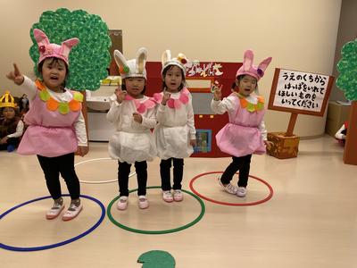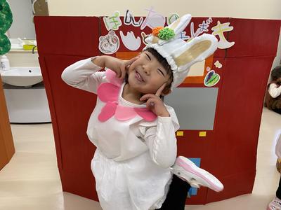 うさぎ🐰さんは、元気もりもり4人組です🐰💗練習の時から元気いっぱいで、全力ジャンプを披露してくれる姿が素敵でした🌿セリフのタイミングを覚えるのが難しいところでしたが、うさぎさんはおままごと遊びの時にも発表会ごっこを混ぜて遊ぶことで台詞もスラスラと覚えてくれました🥺💓